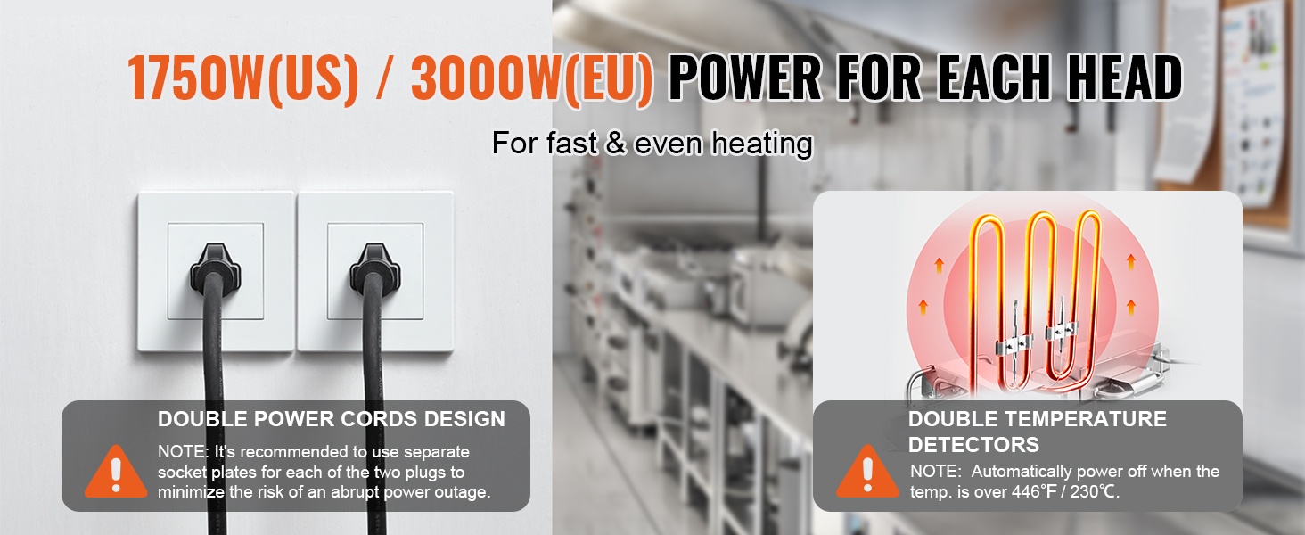 - Ylikuumenemissuoja: katkaisee virran noin 446°F / 230°C ylittävässä lämpötilassa