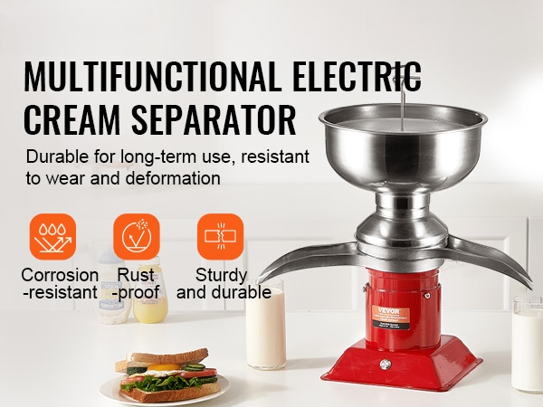 Tällä sähköisellä kermanerottimella erotat helposti maidon kermaksi ja kuorituksi maidoksi kotona tai maatilalla. Ruostumattomasta teräksestä valmistetut osat ja vakaa rakenne tekevät laitteesta hygieenisen ja helposti puhdistettavan.