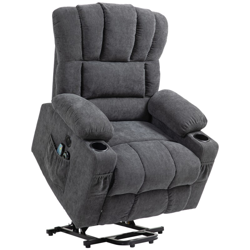 Sähköinen lepotuoli nousuavustuksella, hieronta- ja lämpötoiminto, USB-liitännät, tummanharmaa