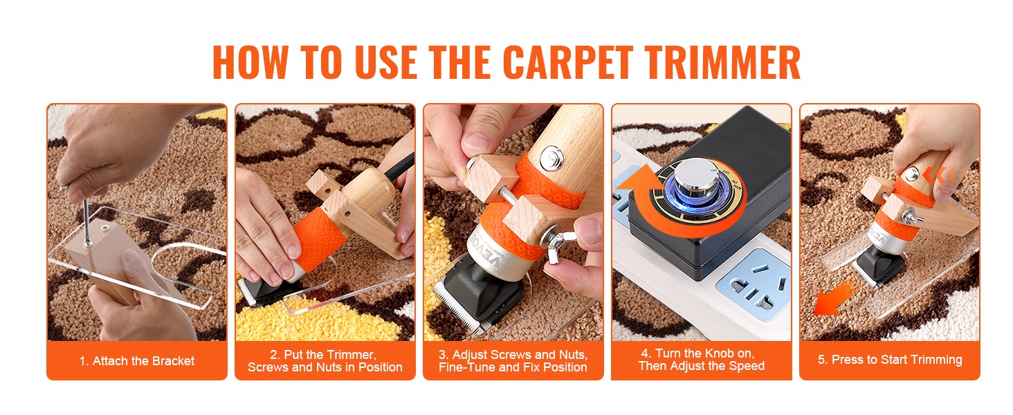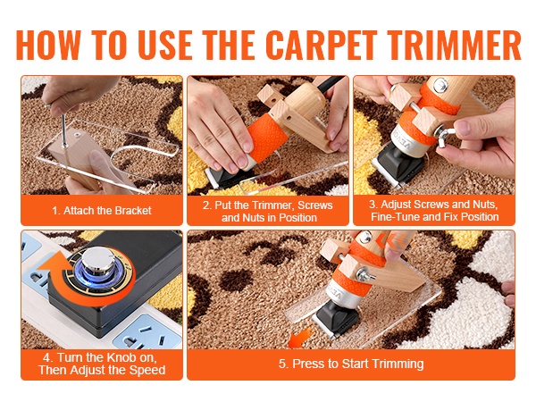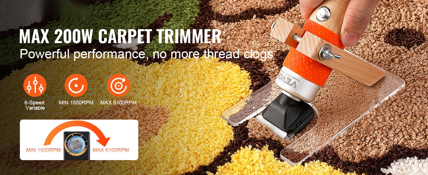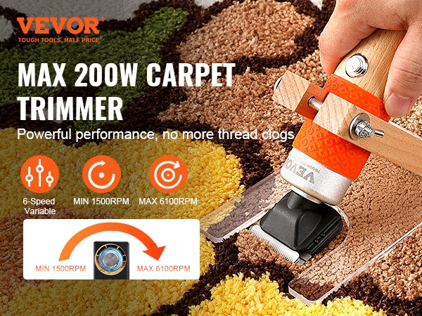 Tämä sähköinen matonleikkuri helpottaa tuftattujen mattojen viimeistelyä ja puhdistusta. 6-portainen nopeudensäätö (1500RPM–6100RPM) vähentää langan tukkeutumista ja tekee leikkaamisesta tasaisempaa ja sujuvampaa.