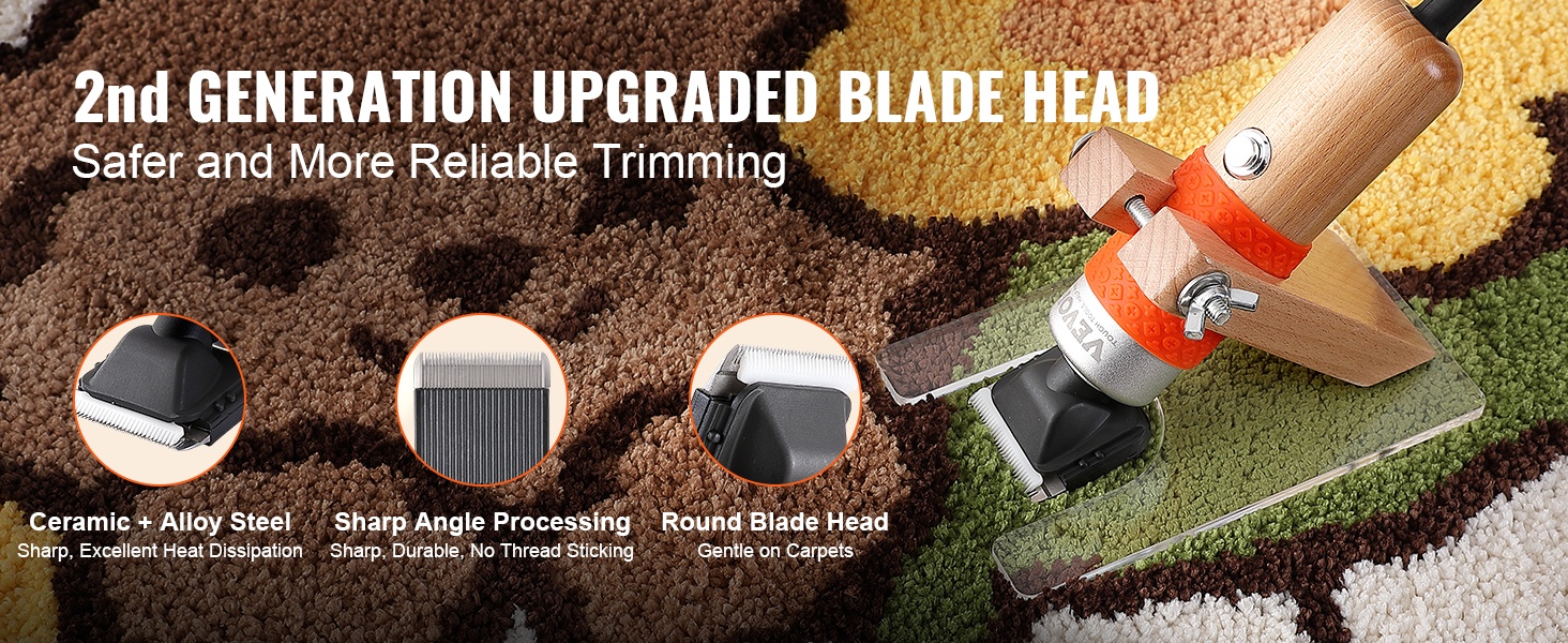 Terä on valmistettu keramiikan ja seosteräksen yhdistelmästä, mikä varmistaa terävyyden, kestävyyden ja tehokkaan lämmönpoiston. Terän päivitetty terävä kulmakäsittely ja pyöristetty teräpää tekevät maton leikkaamisesta tarkkaa ja turvallisempaa.