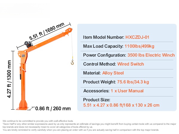 Sähköinen pickup-auton lavanosturi HXCZDJ-01, 360° kääntyvä, nostokapasiteetti 499 kg, seosteräs