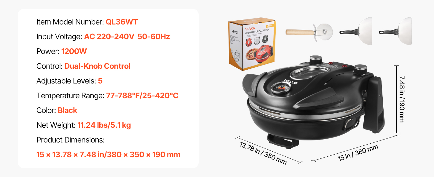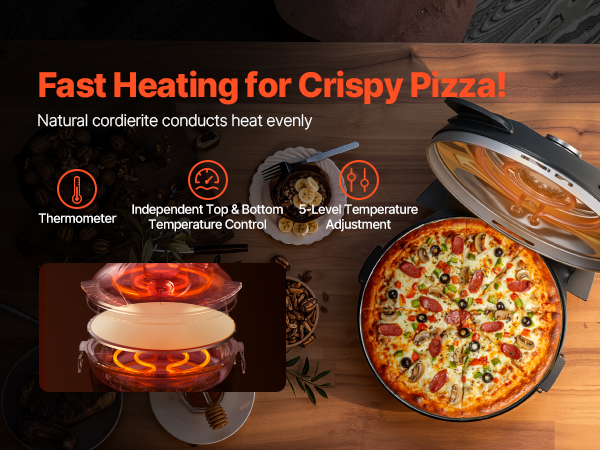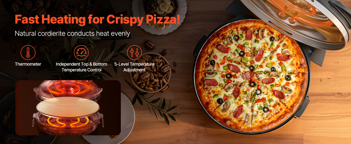 Sähköinen pöytäpizzauuni ruostumaton teräs 850°F pizzakivellä ja lastalla sisä- ja ulkokäyttöön