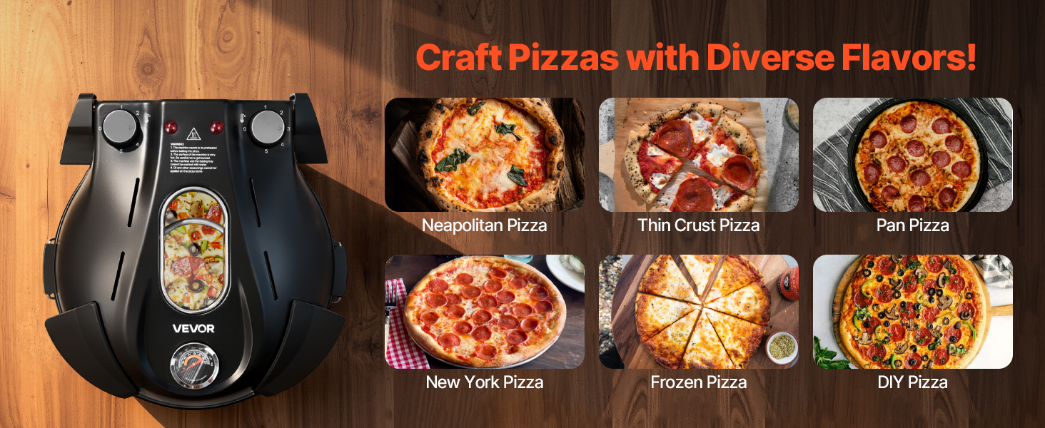 Työpöydälle sijoitettava pizzauuni tarjoaa riittävästi tilaa omille täyteideoille. Voit räätälöidä pizzasi juuri makusi mukaan ja nauttia kotona tehdyn pizzan kokkaamisen ilosta.