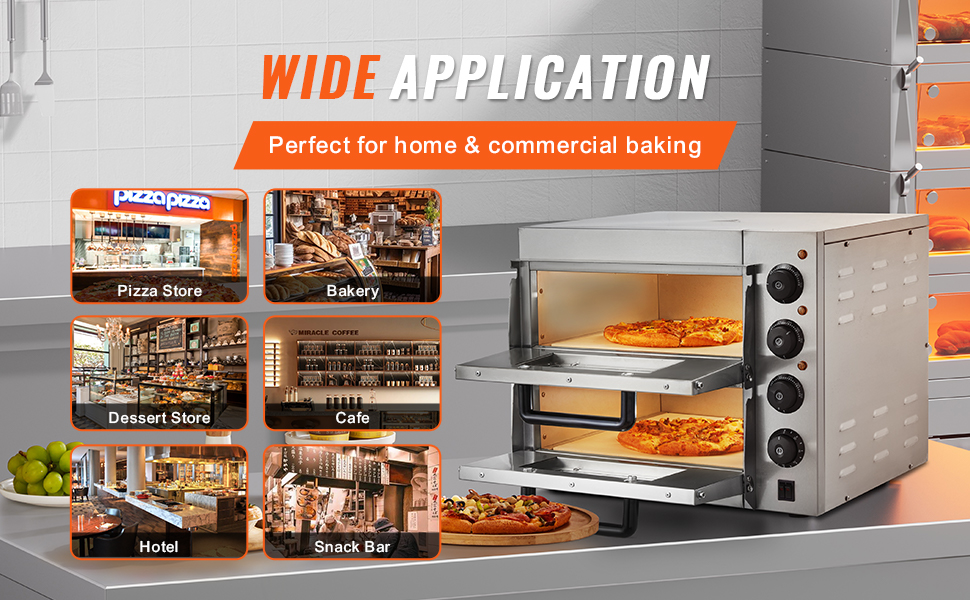 Pöytätasolle sijoitettava pizzauuni soveltuu sekä kotiin että ammattikäyttöön. Se toimii hyvin ravintoloissa, keittiöissä, kioskeissa, leipomoissa sekä perheen juhlahetkissä ja illanistujaisissa.