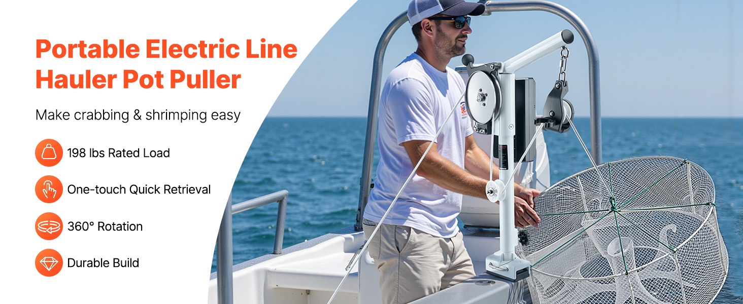 Sähkövinssissä on kuparimoottori, joka tuottaa vahvan vetovoiman. Yksinkertaisen kytkimen ansiosta voit nostaa pyydykset nopeasti ja säästää voimia, jolloin rapujen ja katkarapujen pyynti sujuu vaivattomammin.
