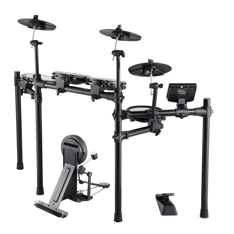 Tämä sähköinen rumpusetti tarjoaa 32 rumpusettiä ja 480 erilaista soundia monenlaisiin musiikkityyleihin. USB MIDI -tuen ansiosta harjoitusten äänittäminen ja säveltäminen on vaivatonta. Hiljainen 8-tuumainen mesh-virveli, 10-tuumaiset symbaalit, mukana tulevat kapulat ja pedaalit tekevät setistä sopivan sekä aloittelijoille että aikuisille soittajille.