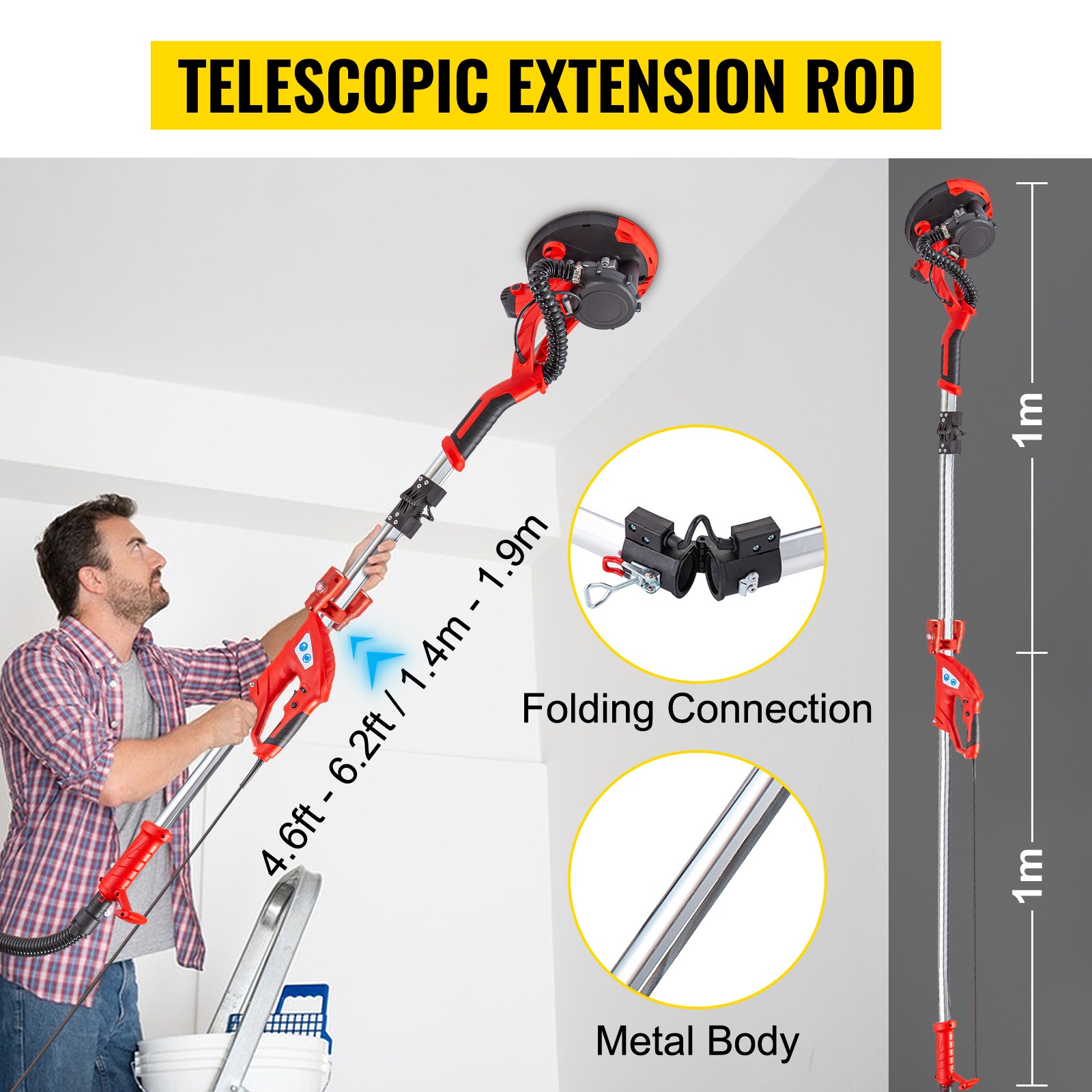 Muovikuoren ja tukevan metallirungon yhdistelmä tekee koneesta kestävän, mutta helposti käsiteltävän. Kahvaa voi pidentää välillä 4.59ft–6.23ft/1.4m–1.9m, joten ylä- ja kattopinnat on mahdollista hioa ilman erillistä tikkaita monissa tilanteissa. Taittuva kahva helpottaa kuljetusta ja säilytystä.