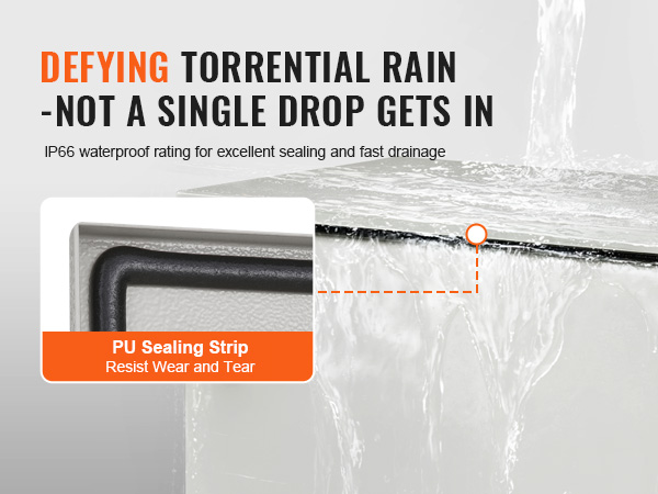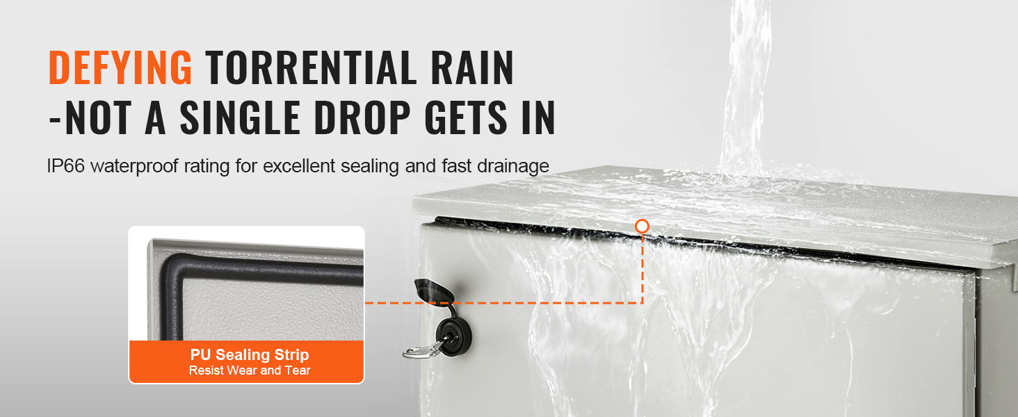 PU-tiivistenauha oven ja rungon välissä muodostaa tiiviin sulun, joka estää sateen ja pölyn tunkeutumisen kaappiin. Rakenteen ansiosta sadevesi ohjautuu nopeasti pois, mikä auttaa saavuttamaan IP66-vesi- ja pölytiiveyden ja pienentää huoltotarvetta.