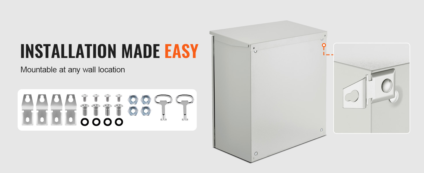 Jokaisen kaapin mukana toimitetaan kaksi metallista avainta, joilla ovi voidaan lukita turvallisesti. 304-ruostumattomasta teräksestä valmistettu kiinnitysteline mahdollistaa tukevan seinäkiinnityksen.