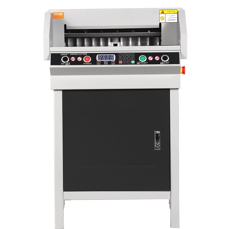 Raskaan käytön paperileikkuri kokonaan metallirakenteella. Terävä terä tukee 50–450 mm leikkausleveyttä ja enintään 40mm leikkauspaksuutta. Infrapunavalolla toteutettu turvajärjestelmä ja hätäpysäytyspainike lisäävät turvallisuutta. Sähköinen ohjaus tekee laitteesta sopivan toimistoihin, painotaloihin ja muuhun ammattikäyttöön.