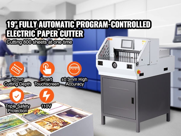Sähköinen paperileikkuri leikkaa paksuja paperinippuja yhdellä työvaiheella, mikä nopeuttaa työskentelyä esimerkiksi painotaloissa, kopiointipalveluissa ja toimistoissa. Mukana tulevat varaterä ja leikkuutanko helpottavat ylläpitoa ja pidentävät laitteen käyttöikää. Tukeva valurautarunko vähentää leikkausvoimien aiheuttamia värinöitä ja pienentää mittavirheitä.