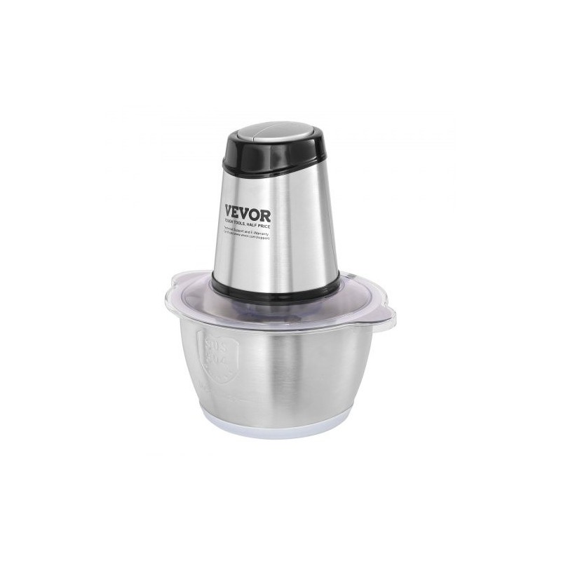 Sähkökäyttöinen monitoimihakkuri 2L ruostumattomasta teräksestä kulho 400W kaksinopeuksinen BPA-vapaa turvakytkin