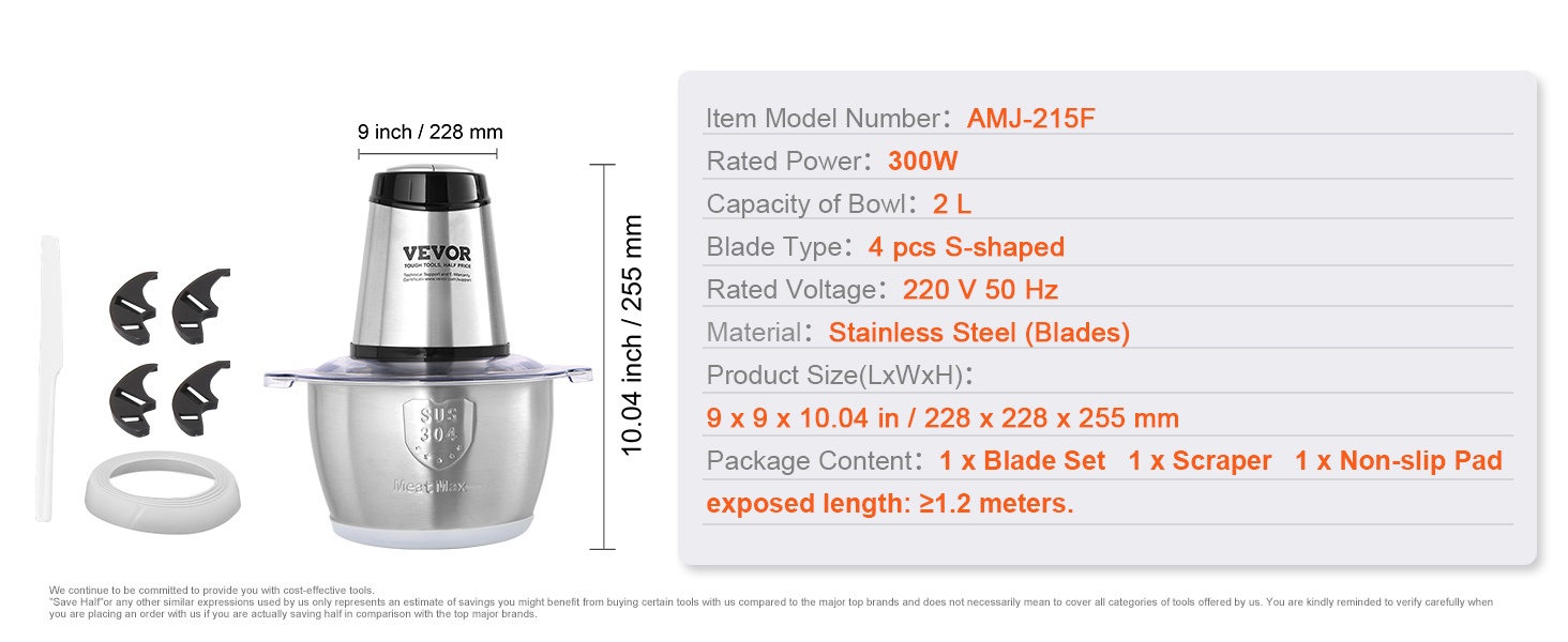 - 2L / 8 cup ruostumaton teräskulho monenlaiseen pilkkomiseen ja jauhamiseen