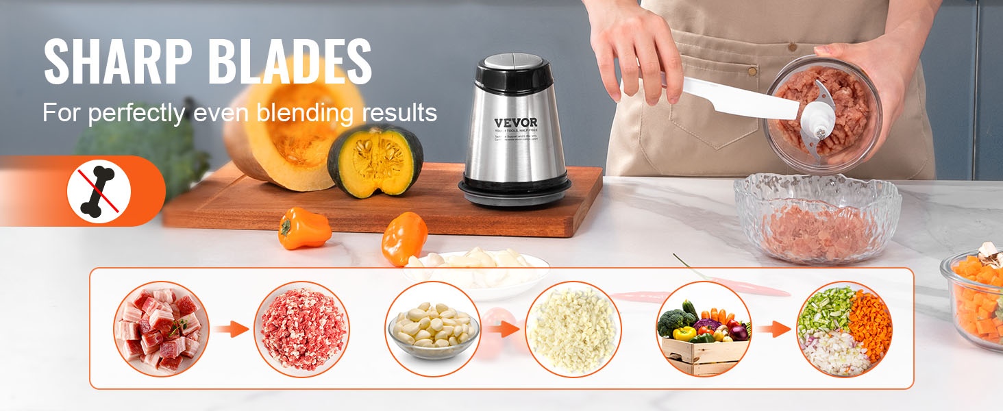 Koko laite on valmistettu ruostumattomasta teräksestä. SUS420-teräksestä valmistetut terät ovat kestävät ja riittävän terävät jauhamiseen, myös esimerkiksi broilerin ruston ja osittain jäisen lihan käsittelyyn.