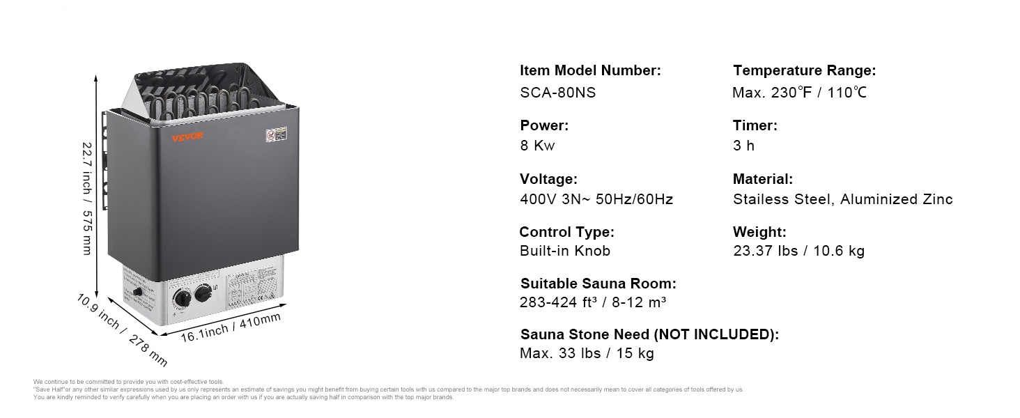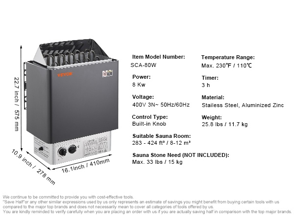 Tämä 8KW sähkölämmitin on suunniteltu 8-12 m³ saunahuoneisiin ja soveltuu sekä koti- että ammattikäyttöön, kuten hotelleihin, kylpylöihin ja liikuntakeskuksiin. Nopea lämmitys, selkeä säätö ja kestävä ruostumaton teräsrakenne tekevät siitä huolettoman valinnan monenlaisiin saunoihin.