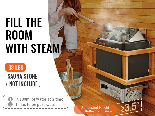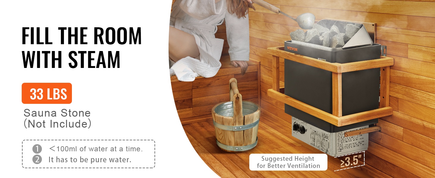 Tarvittava saunankivimäärä (EI SISÄLLY): enintään 33 lbs / 15 kg