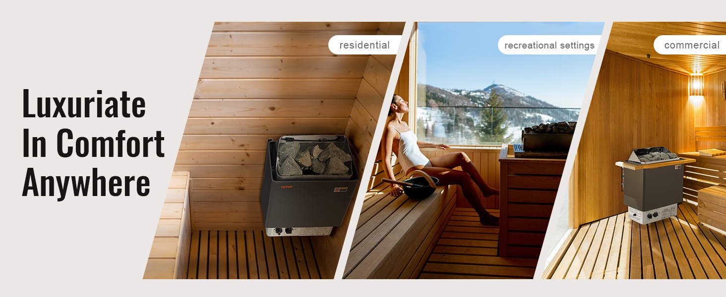 Lämmitin soveltuu monenlaisiin kohteisiin: kotisaunoihin, kaupallisiin kylpylöihin, hotelleihin, liikuntakeskuksiin ja muihin tiloihin, joissa halutaan vakaa ja luotettava sähkösauna.
