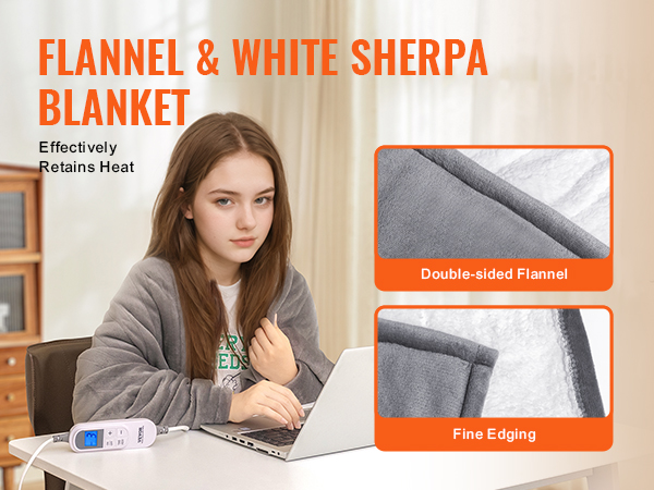 Sähkölämmitteinen viltti 130 x 160 cm, flanelli ja sherpa, 6 lämpötilaa, ajastin 1–9 h, harmaa