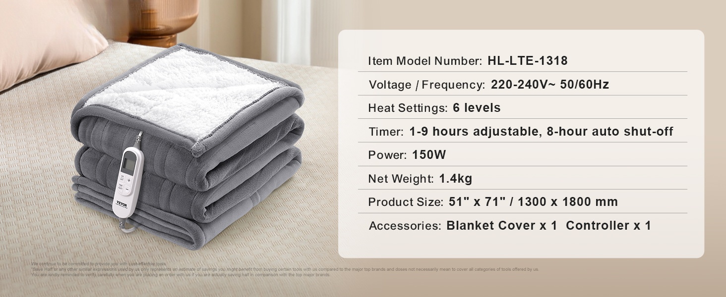 Tämä sähkökäyttöinen lämmityspeitto on turvallinen ja luotettava valinta talven viileneviin iltoihin. Useat säädettävät lämpötilatasot ja laadukas lämmityslanka takaavat nopean ja tasaisen lämmityksen, jotta voit säätää lämmön juuri tarpeidesi mukaan.