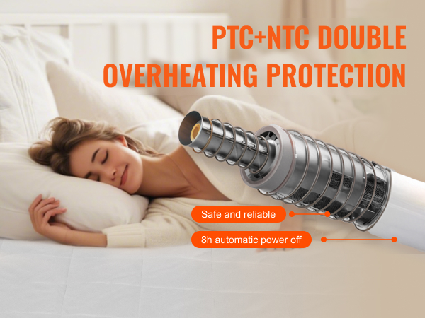 Lämpöpatja käyttää PTC‑+ NTC‑kaksoisylikuumenemissuojaa, joka estää liiallisen kuumenemisen ja katkaisee virran automaattisesti kahdeksan tunnin käytön jälkeen.