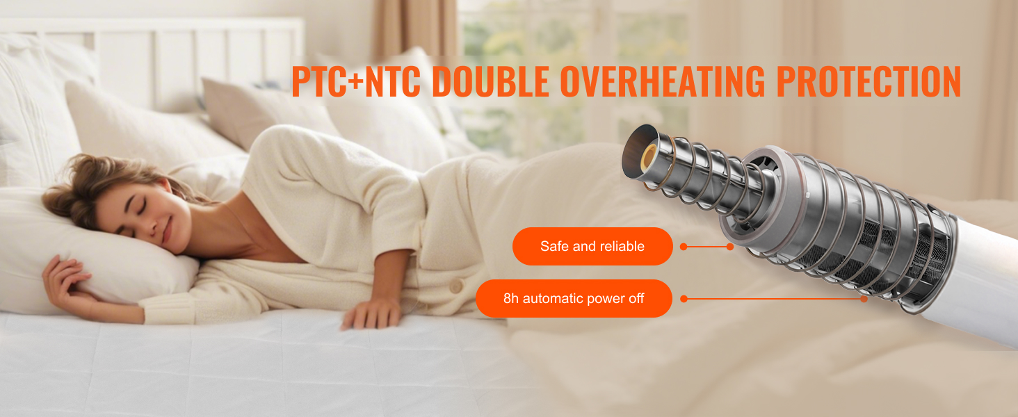 Lämpöpatja hyödyntää edistynyttä PTC+NTC-kaksoisylikuumenemissuojausta, joka auttaa estämään liiallisen kuumenemisen ja vähentää mahdollisia paloturvallisuusriskejä. Voit käyttää patjaa levollisin mielin yön yli.