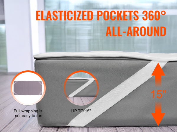 noin 38 cm syvä joustava taskurakenne ympäröi patjan 360° ja auttaa pitämään lämpöpatjan tiiviisti paikallaan patjan päällä. Se ei pääse helposti liukumaan tai rypistymään ja sopii useimpiin tavanomaisiin patjamalleihin.