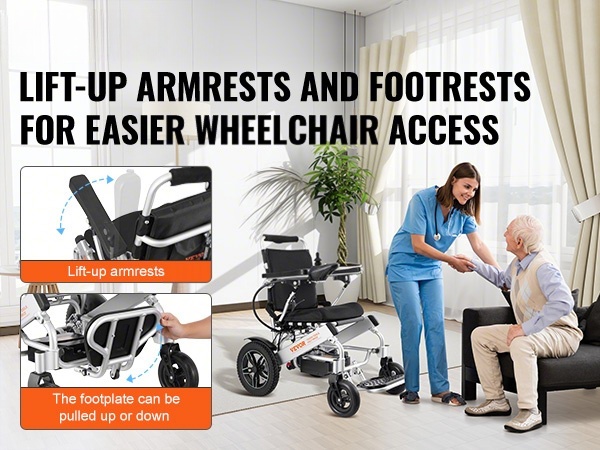 - Särmästä nostettavat käsinojat ja sivulle avautuvat jalkatuet helpottavat siirtymistä tuoliin ja siitä pois