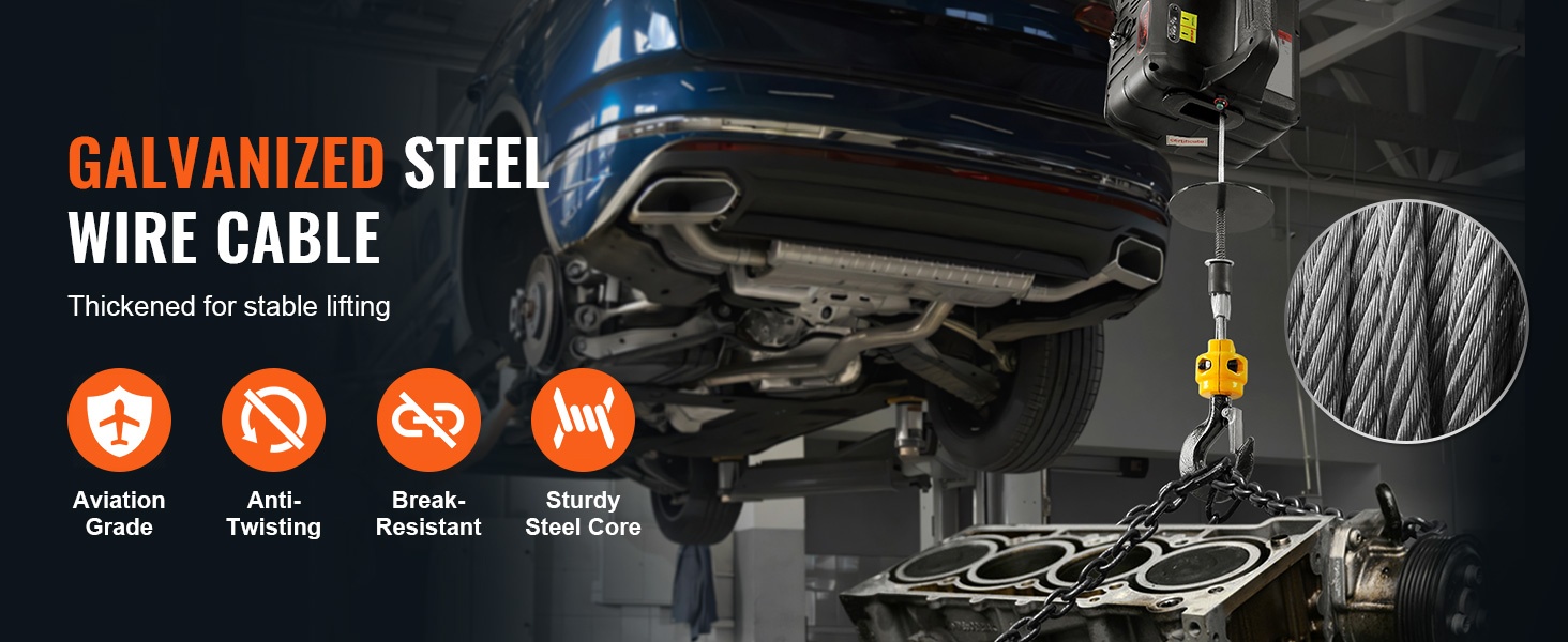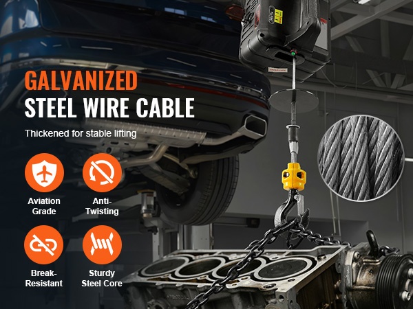 Paksu, sinkitty teräsvaijeri on suunniteltu tarjoamaan vakaan ja turvallisen noston ilman nykimistä. Rakenne tukee toistuvaa käyttöä ja kuormien hallittua liikuttamista.