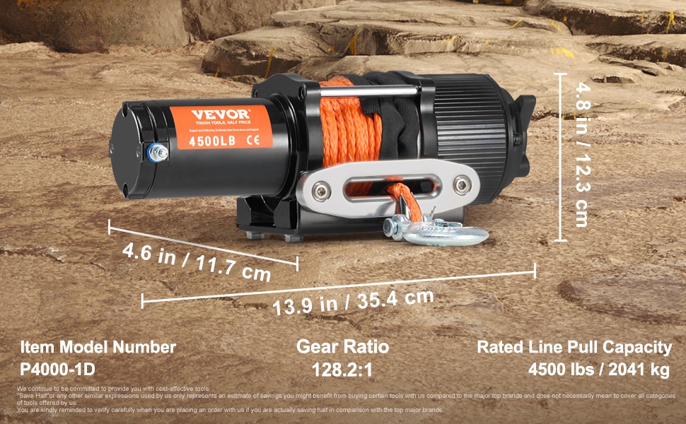 Sähkötalja ATV UTV 2041 kg synteettinen köysi IP55 12V kaukosäädin