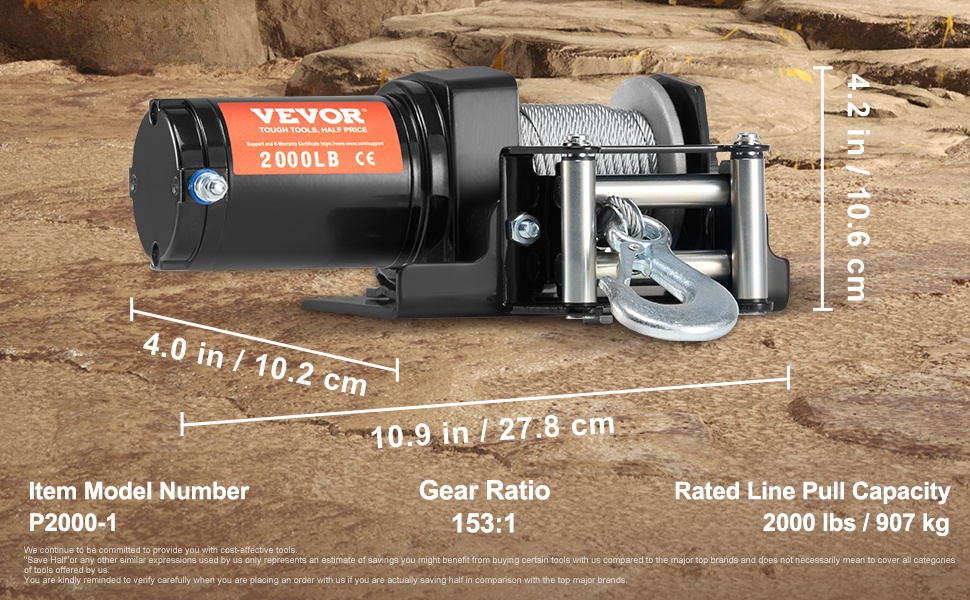 Vinssin nimellinen vetokapasiteetti on (907 kg) sekä ATV‑ että UTV‑käyttöön.