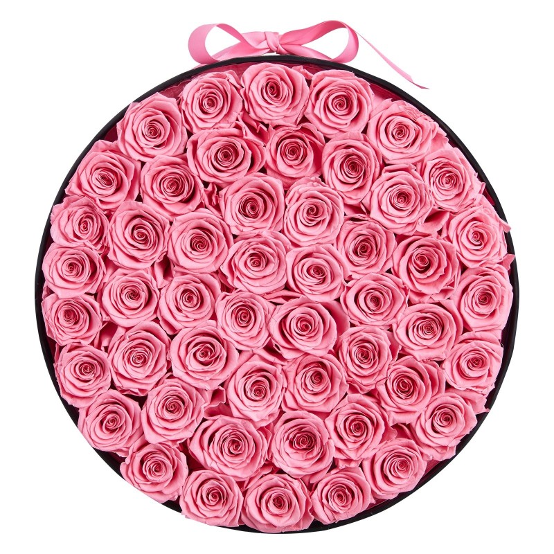 Säilötyt ruusut 50 kpl pyöreässä lahjarasiassa, Sweet Pink, Circle-50M