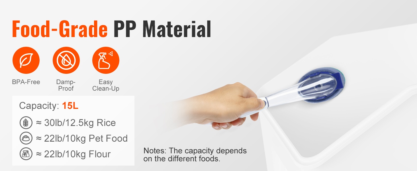 - Sopii esimerkiksi riisille, viljalle, jauhoille, sokerille, pähkinöille ja lemmikkien ruoalle.