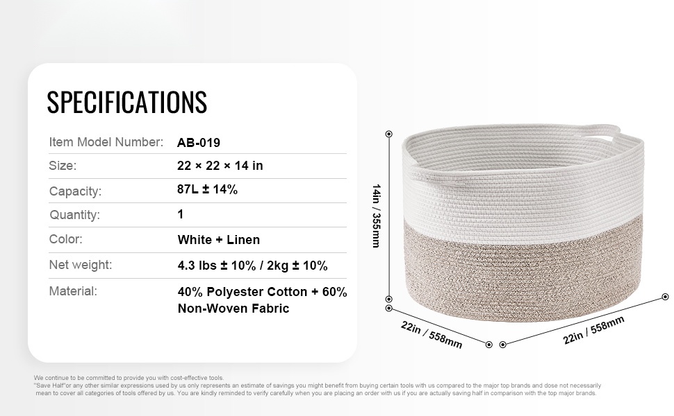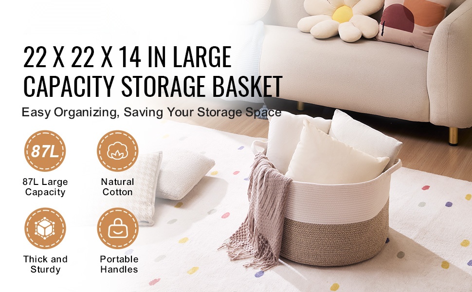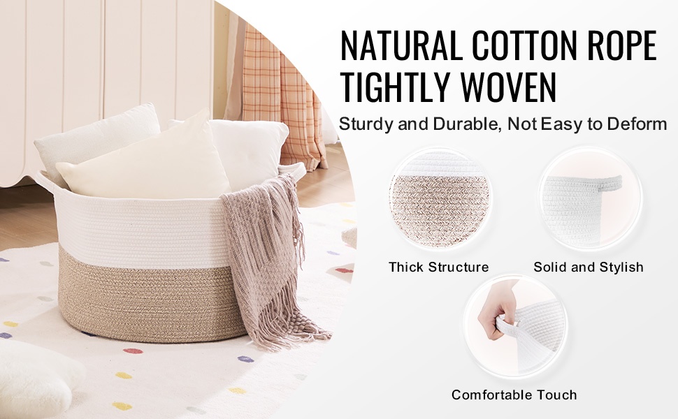 Tämä tilava puuvillanyöristä punottu säilytyskori auttaa pitämään kodin tavarat järjestyksessä. Kori säilyttää hyvin muotonsa, ei roiku eikä painu kasaan, ja sen molemmilla puolilla olevat kahvat tekevät siirtelystä kevyempää.