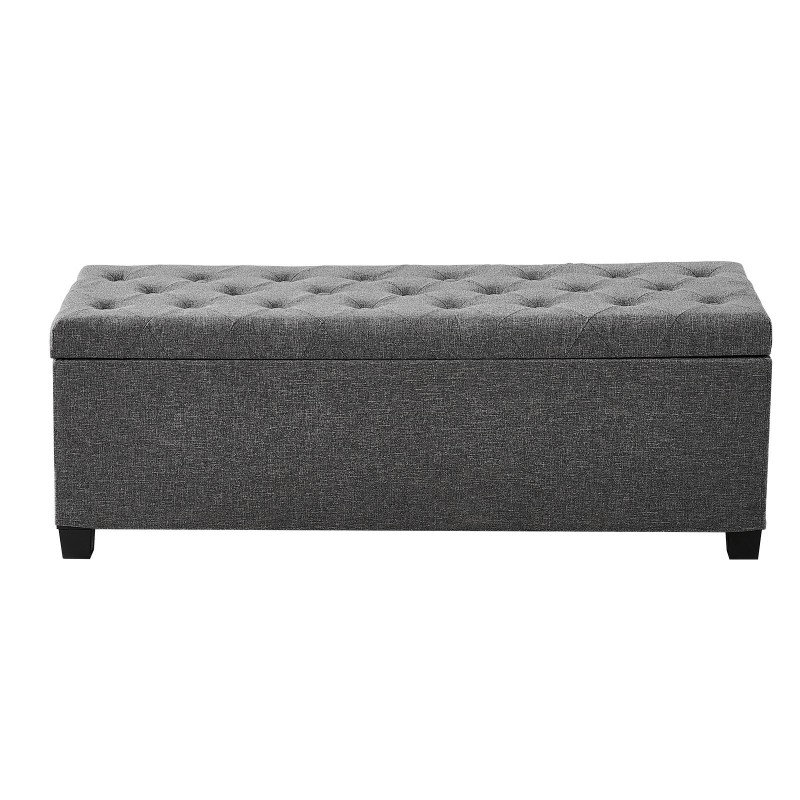 Säilytysjakkarassa on vahvistettu rautarunko ja laadukkaat saranat, jotka tarjoavat luotettavan tuen. Liukuestotyynyt suojaavat lattiaa naarmuilta ja estävät penkin liukumisen käytön aikana. Yksityiskohdat on suunniteltu mukavuutta ja huolettomuutta silmällä pitäen.