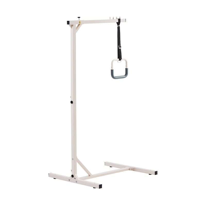 Tämä itseseisova sängyn trapetsitanko on suunniteltu helpottamaan asennon vaihtamista ja liikkumista sängyssä. Se tarjoaa tukevan otteen, jonka avulla käyttäjä voi nousta istumaan, siirtyä pyörätuoliin tai korjata asentoaan turvallisemmin ja itsenäisemmin. Sopii erityisesti ikääntyneille, vuodepotilaille, raskaana oleville sekä henkilöille, joilla on rajoittunut liikuntakyky.
