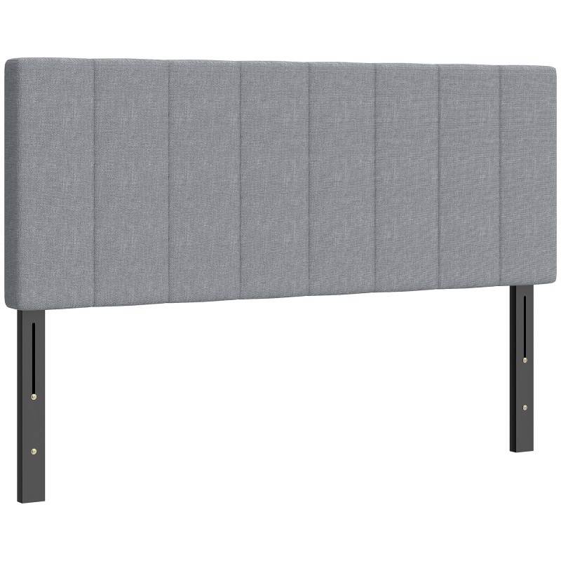 Sängynpääty metallijaloilla 160 cm, korkeussäädettävä 106–126 cm, harmaa pellavapintainen kangas