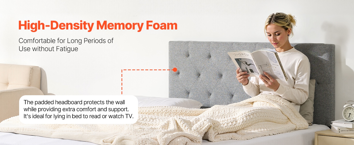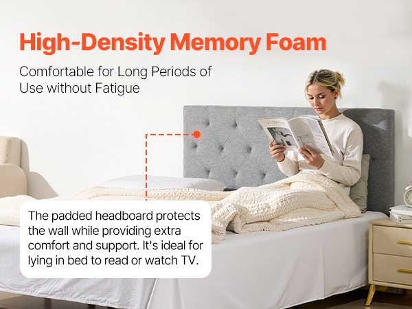 Kimmoisa memory foam -pehmuste mukautuu selkärangan muotoon ja tarjoaa miellyttävän tuen, jotta pitkäkin lukuhetki tai rentoutumishetki sängyssä tuntuu hyvältä.