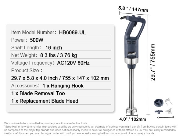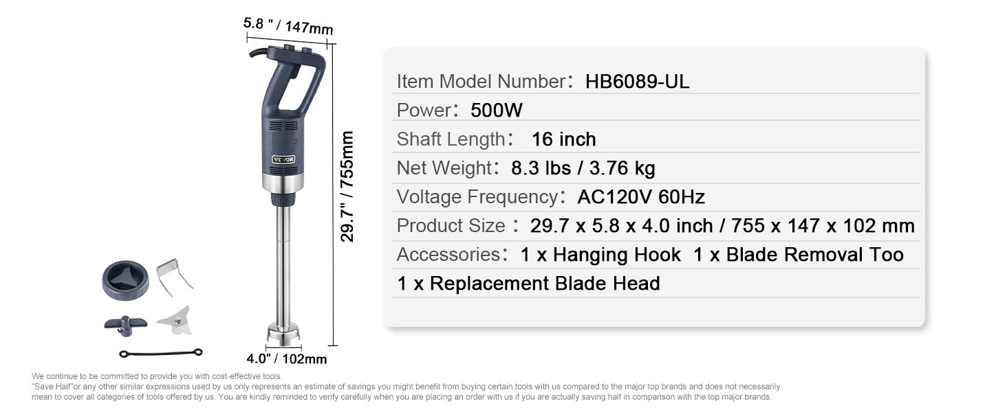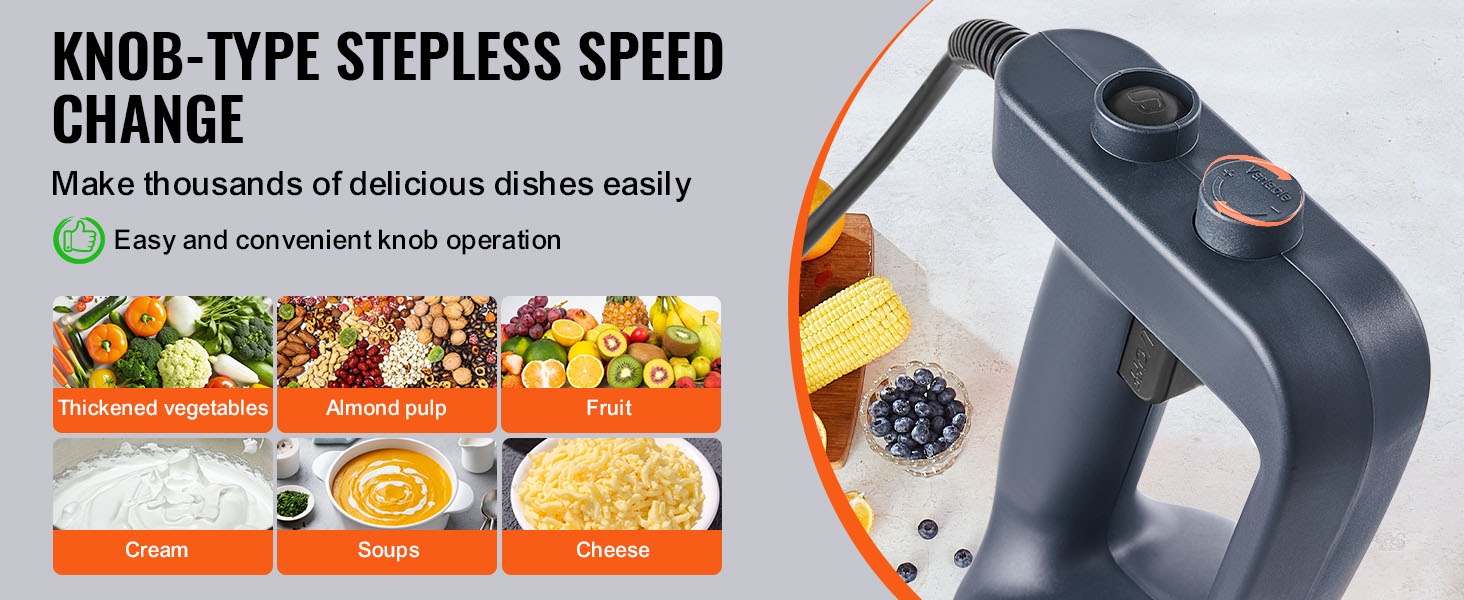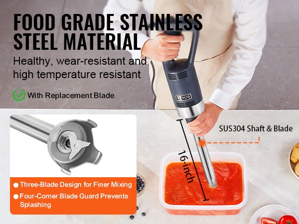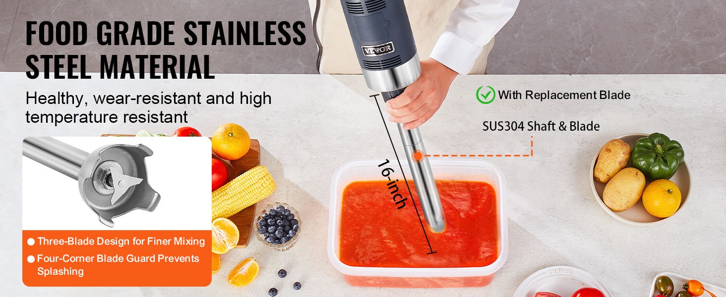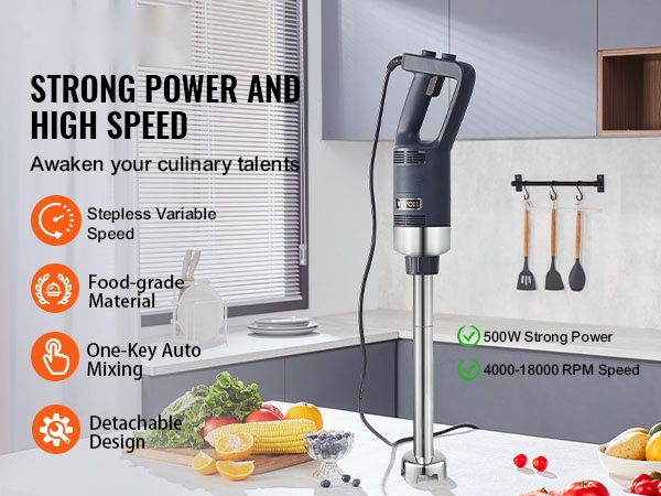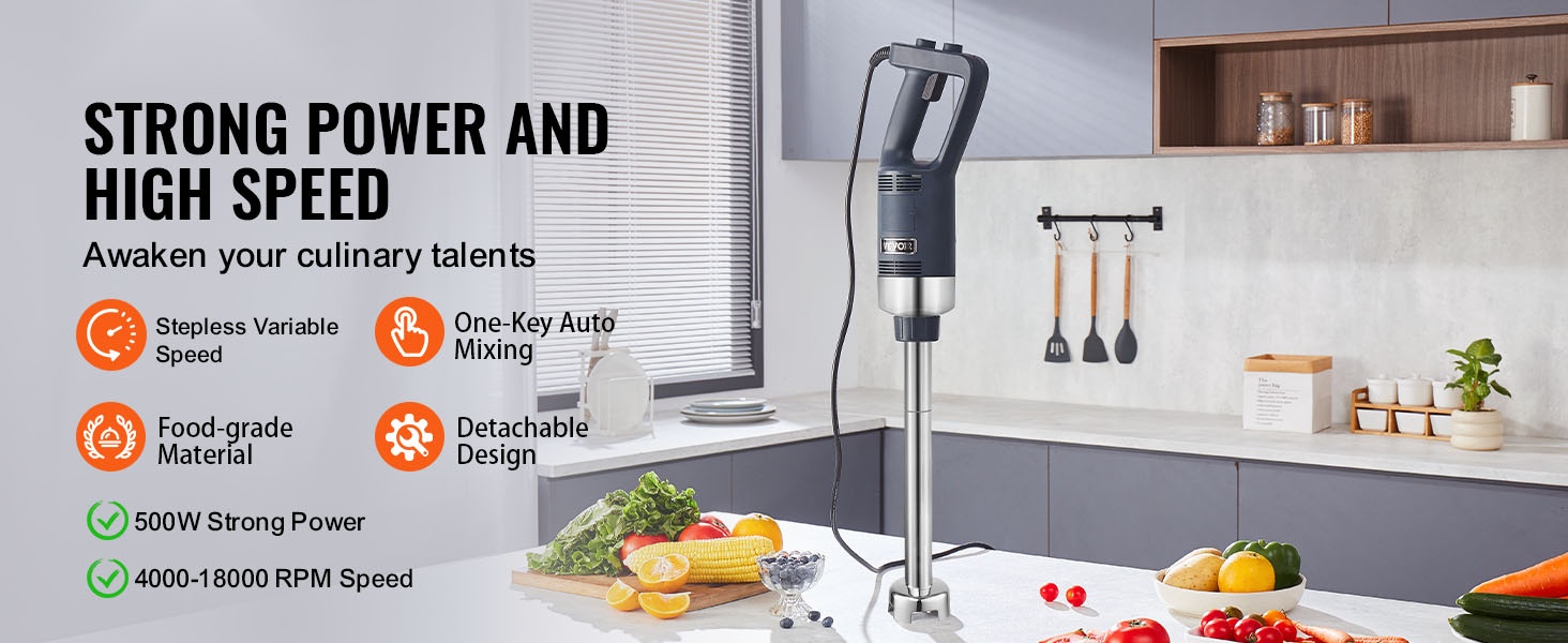 Tämä 500W ammattikäyttöön suunniteltu sauvasekoitin helpottaa suurten keitto-, kastike- ja vaahtomäärien valmistusta. Tehokas moottori, portaattomasti säädettävä nopeus ja 16-tuumainen sekoitusvarsi mahdollistavat tasaisen lopputuloksen suoraan kattilassa tai astiassa.