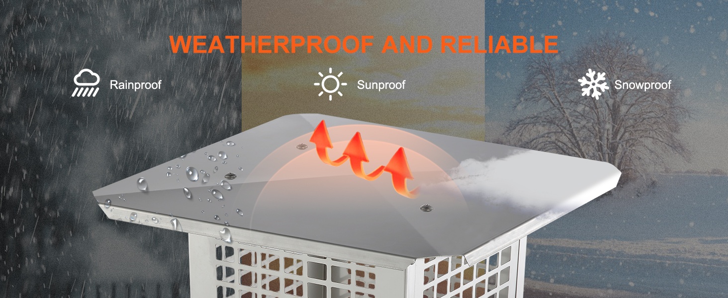 Säänkestävä savupiipun hattu ulkokäyttöön