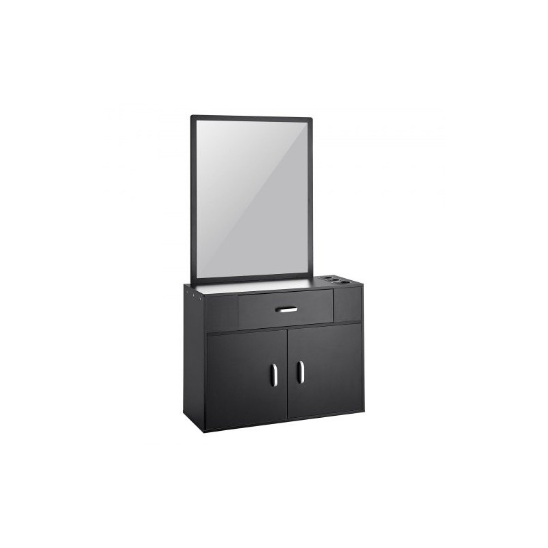 Hiustenmuotoilupisteessä on tyylikäs ja kestävä PVC-kaksinkertainen koristepinta. Sivupaneelit tukevat seinäkiinnitystä tai vapaasti seisovaa asennusta, joten ulkonäkö ja käyttöikä pysyvät hyvinä myös vilkkaassa ammattilaiskäytössä.
