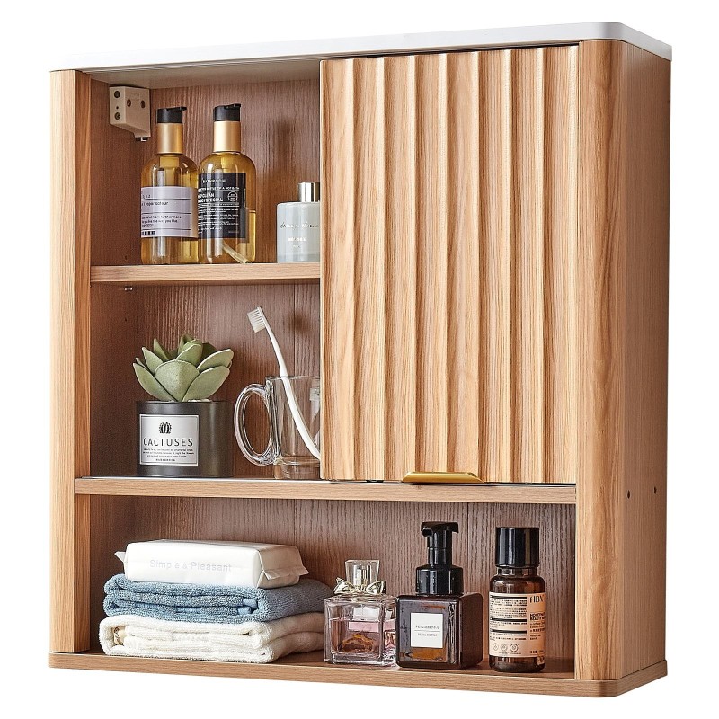 Tämä seinään kiinnitettävä kylpyhuonekaappi tarjoaa käytännöllistä säilytystilaa pieneenkin tilaan. Kompaktiin runkoon mahtuu säädettävä hylly sekä avoin osio, joten wc-tilan, pesuhuoneen tai kodinhoitohuoneen pikkutavarat pysyvät järjestyksessä ja helposti saatavilla.