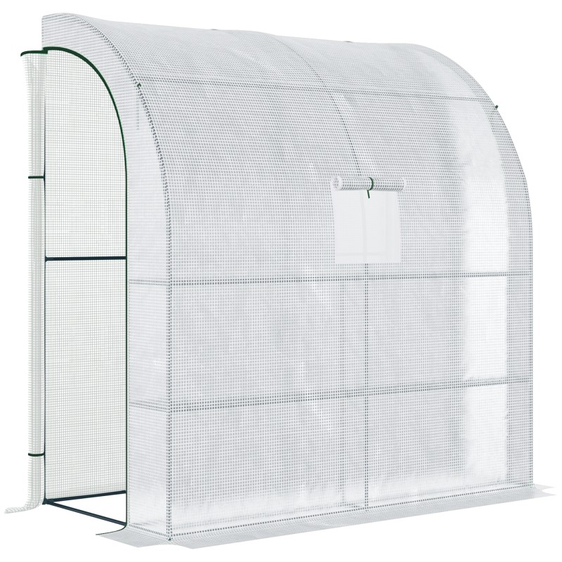 Kasvihuone voidaan sijoittaa talon, autotallin, varaston tai puutarhavajan seinustalle, mikä parantaa sen vakautta ja säästää tilaa. Säänkestävä teräsrunko ja kaksikerroksinen PE-peite auttavat pitämään lämpötilan ja ilmankosteuden tasaisempina, jotta kasvit kasvavat elinvoimaisemmin pidempään syksyyn saakka.