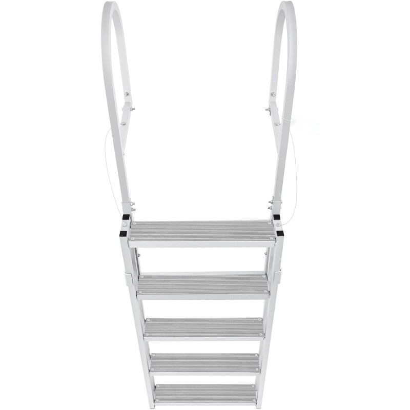 Sisäänvedettävä 5-portainen laituri- ja venetikkaat helpottavat turvallista nousua ja laskeutumista veteen. Tikkaiden korkeutta voi säätää välillä 66.9–78.9 tuumaa, ja luja alumiiniseosrakenne tarjoaa enintään 350 lbs kantavuuden. Leveät, liukastumista estävät askelmat lisäävät käyttömukavuutta laiturilla, ponttooniveneessä, uima-altaassa tai muissa vesikohteissa.