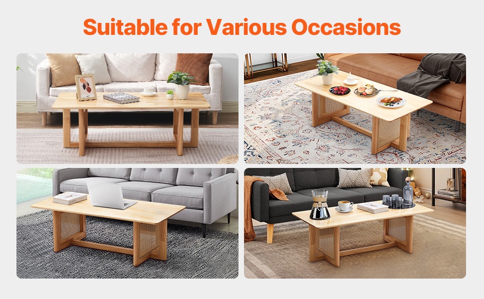 Luonnonsävyinen sohvapöytä toimitetaan kaikkien tarvittavien kiinnikkeiden ja yksityiskohtaisten kokoamisohjeiden kanssa. Kokoaminen onnistuu selkeiden ohjeiden avulla noin 30 minuutissa.