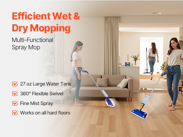 Spray-moppi kuivaan ja märkään siivoukseen 800 ml 360 asteen kääntyvä pää sininen