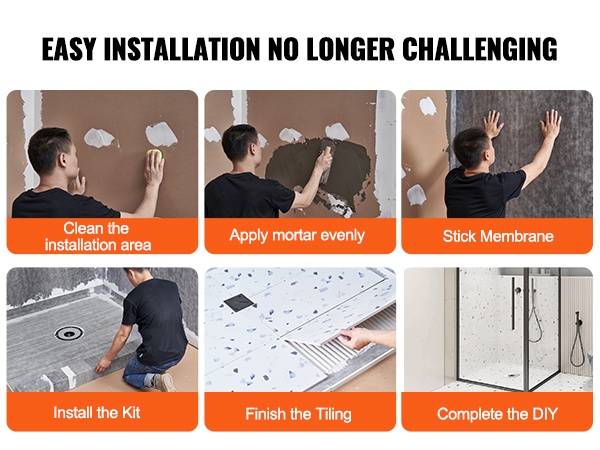 Pakkaus sisältää kaikki keskeiset asennustarvikkeet, joten erillisiä lisäostoja ei tarvita. Näin suihkutilan vesieristetyn pohjan voi asentaa nopeasti ja hallitusti.