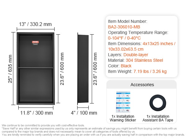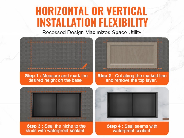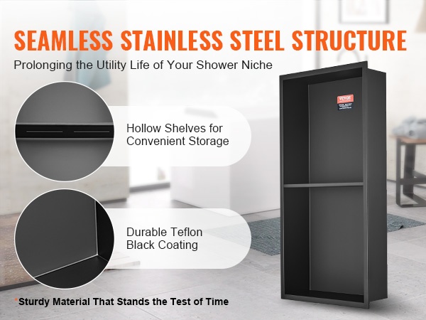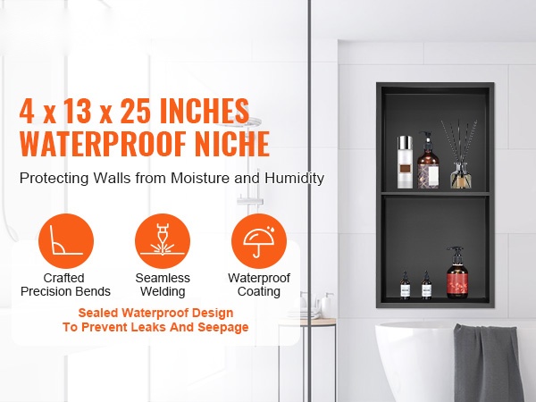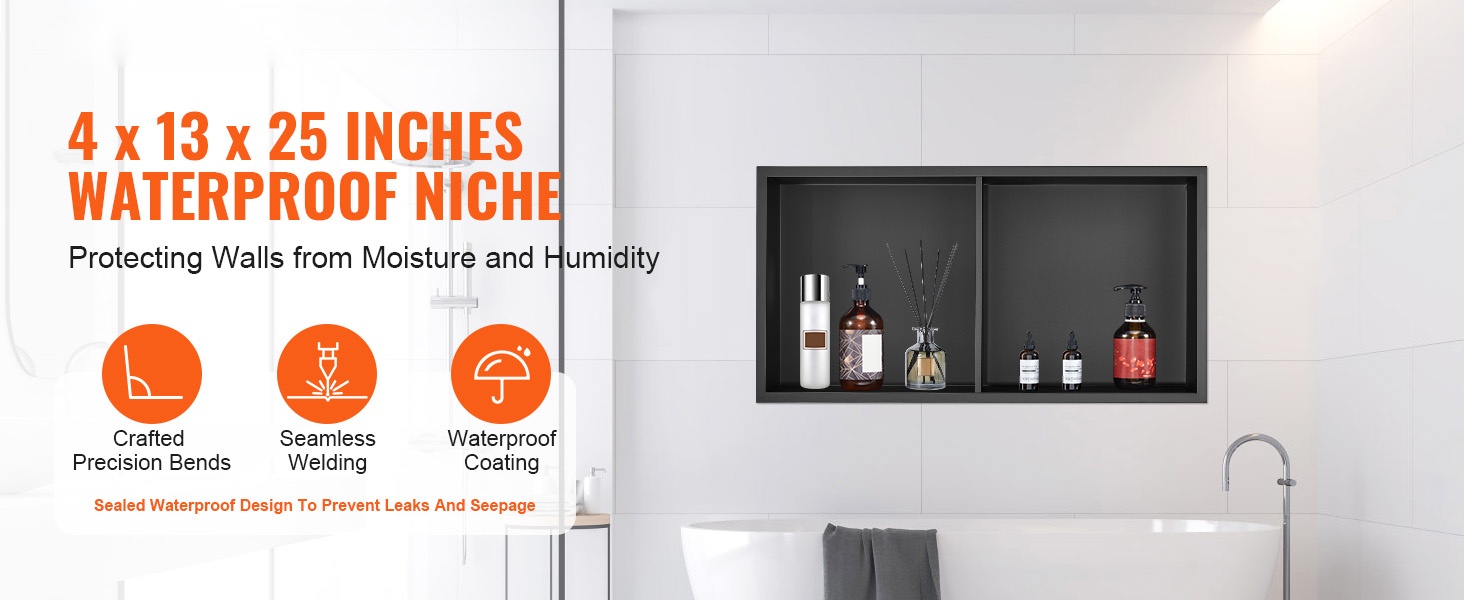Seinäsyvennykseen upotettava suihkukolo tarjoaa käytännöllisen ja huomaamattoman säilytysratkaisun kylpyhuoneeseen. Kestävä 304 ruostumattomasta teräksestä valmistettu rakenne on täysin tiivis ja vedenpitävä, ja naarmuuntumista sekä korroosiota kestävä pinta on helppo puhdistaa. Esiasennettu ontto hylly estää veden kertymisen, ja integroitu LED-valonauha tuo lisää näkyvyyttä ja tunnelmaa.