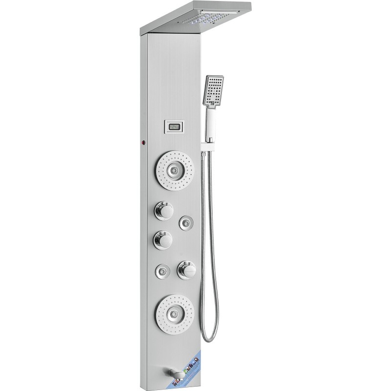 Suihkupaneeli ruostumattomasta teräksestä seinään asennettava 6 suihkutilaa 4 vartalohierontasuutinta LED