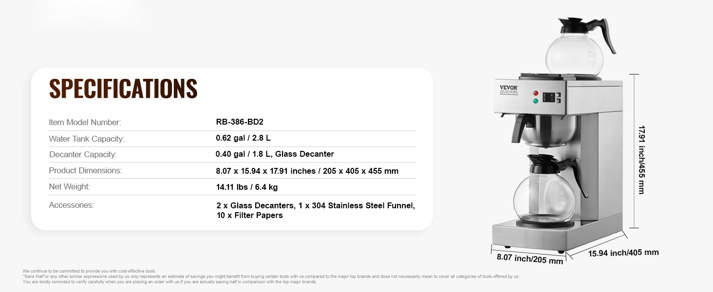 - Vesisäiliön tilavuus: 0.62 gal / 2.8 L